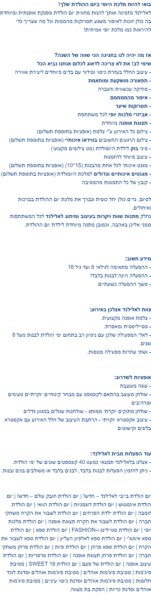 חגיגה נוצצת וקסומה של ספא, קריוקי, דוגמניות וים פינוקים עם כל החברות הכי טובות.